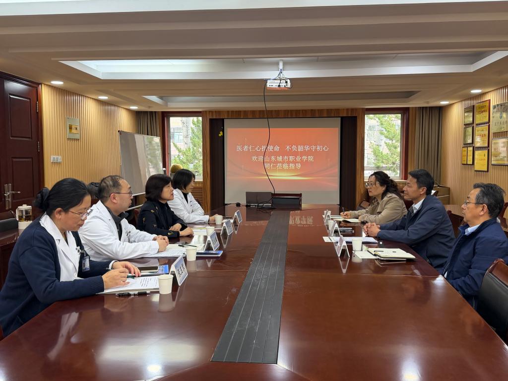 4月16日下午,山东城市服务职业学院副院长姜兵一行来校医院考察交流,围绕教职工健康管理、体检服务保障等工作开展专题调研。后勤管理处副处长、校医院负责人李进莉带领医院领导班子及相关科室负责人参与座谈,双方通过实地参观、座谈交流的形式,深入探讨高校校医院医疗服务与教职工健康保障工作经验。