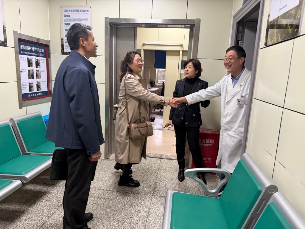 李进莉陪同姜兵一行先后参观了校医院各业务科室,详细介绍了医院科室布局、医疗设施配置、日常诊疗服务开展及教职工健康管理等基本情况。参观过程中,双方就校医院运营管理、医疗服务能力建设、健康体检流程优化等方面工作进行了现场交流,深入了解我校医院在服务师生、保障校园健康方面的工作举措。